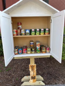 We built a blessing box outside the entrance of the church, which is convenient to anyone needing to use it. This box is restocked every Tuesday, Thursday, and Saturday.